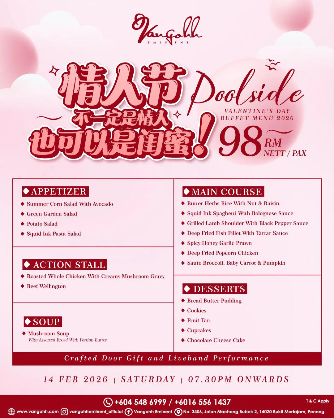 This Valentine’s Day, invite couples / soulmates to embark on the journey of enchantment . Indulge in a sumptuous with only RM 98 where every flavour is a relevation.