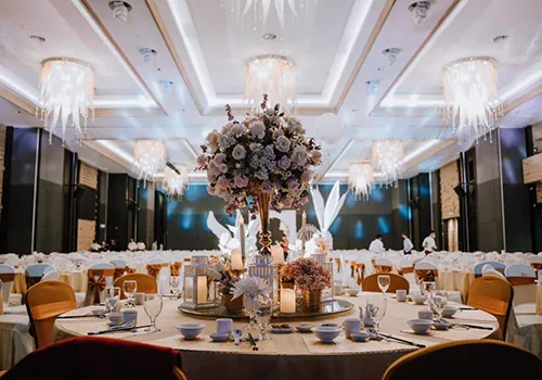 Vantage features three interconnecting banquet rooms that can comfortably accommodate thousands of guests. With a sophisticated setting, dedicated make-up room, versatile stage options, full audiovisual facilities, and a custom air purification system, we ensure the highest level of comfort and service. Let us make your special occasion a truly memorable experience. For an elegant and spacious venue, Vantage is where celebrations come to life.
