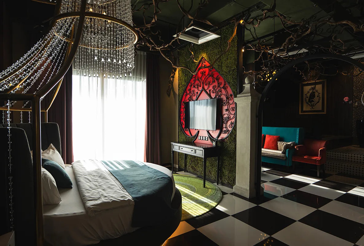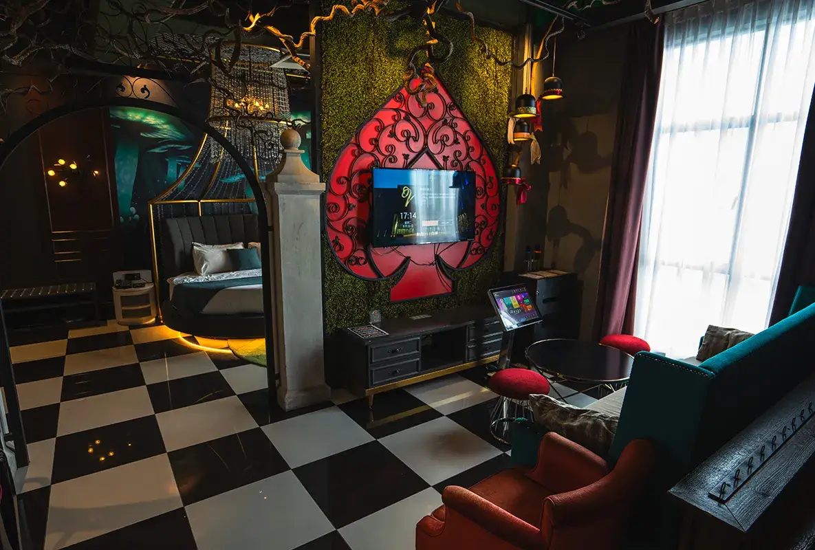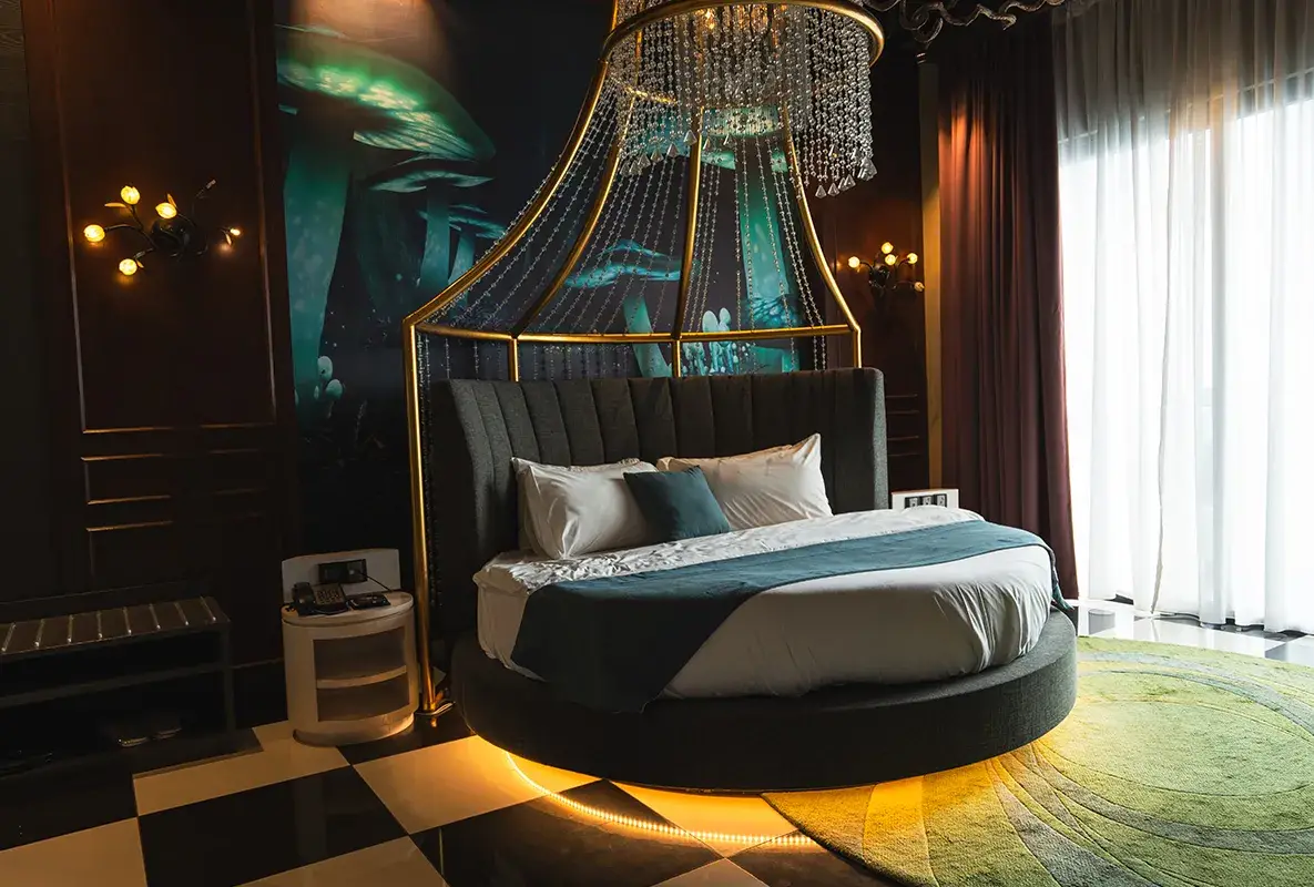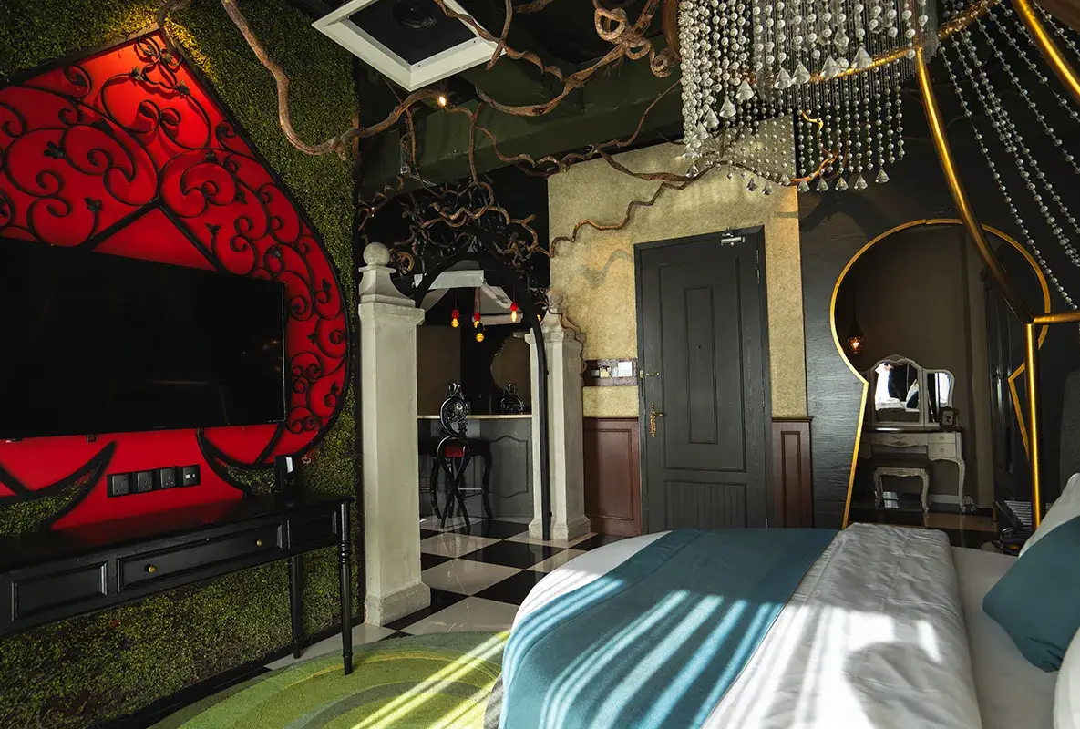Perfect for couples, dreamers, and lovers of literature, the Alice in Wonderland Theme Room offers a distinctive stay that blurs the line between reality and fantasy – an enchanting escape where imagination comes to life.