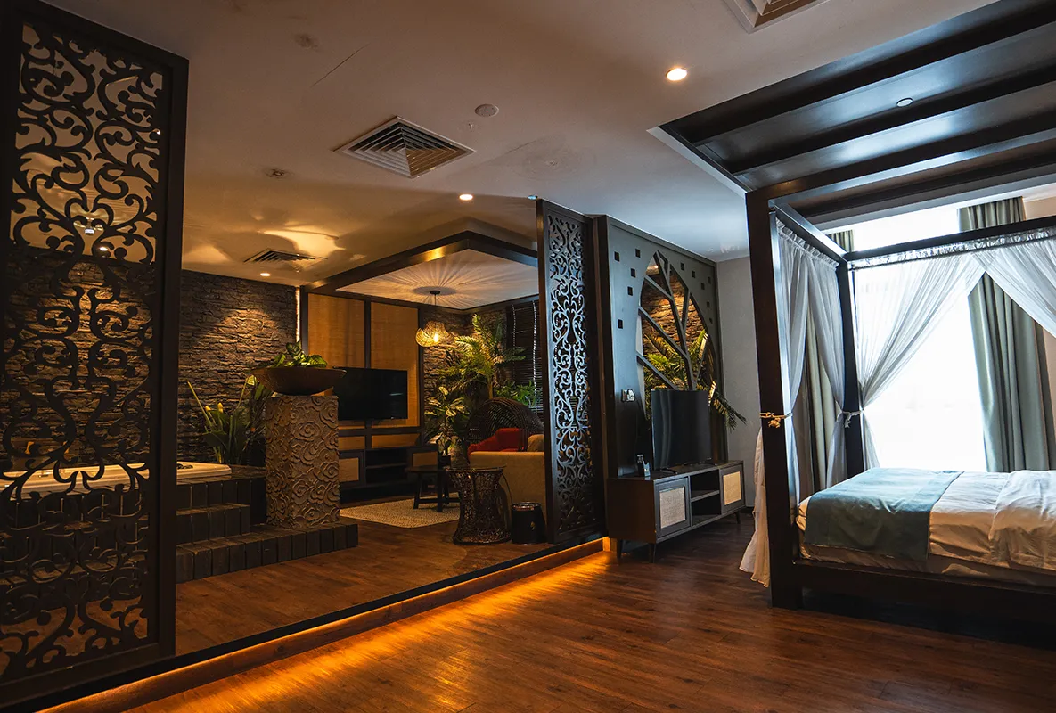 Blending Eastern philosophy with contemporary Western design, the Zen Theme Room embodies harmony and sophistication. Its signature vertical