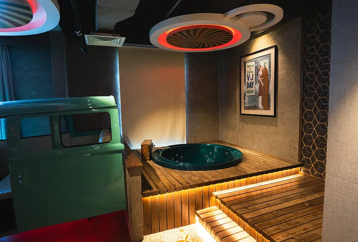 Inspired by the philosophy of Volkswagen — “The People’s Automobile”, this themed room celebrates the joy of individuality and exploration. Designed for travellers who seek something beyond the standard hotel experience, the Volkswagen Theme Room blends nostalgic automotive elements with contemporary comfort.